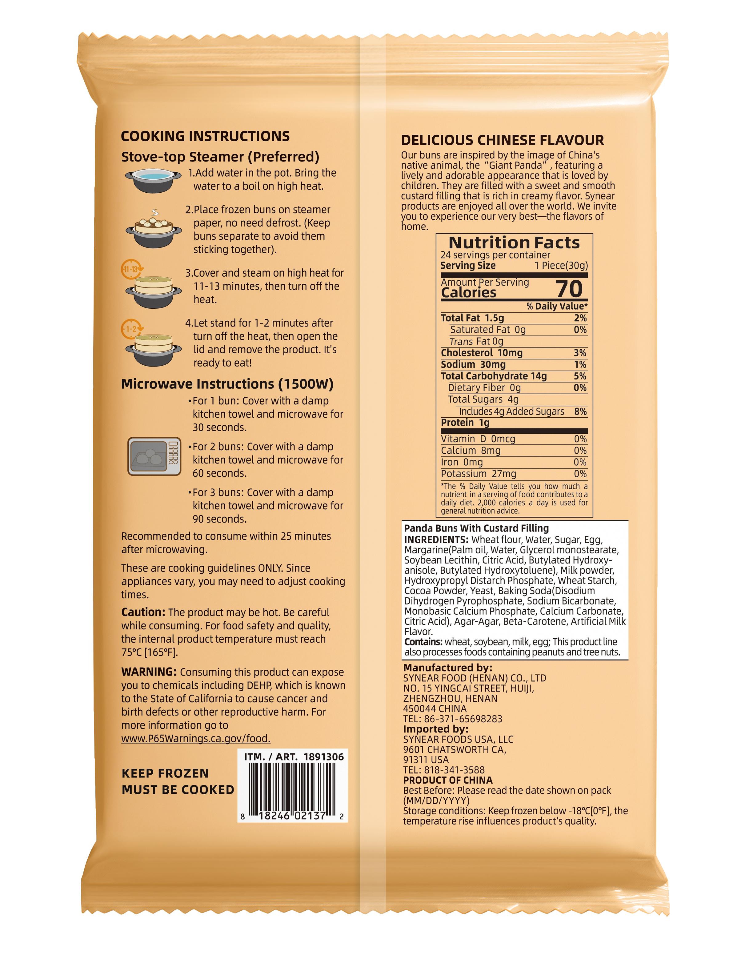 Meet our Synear Panda Buns with Custard Filling—adorable, fluffy buns inspired by China’s beloved Giant Panda. Soft on the outside and filled with smooth, creamy custard, they’re a delightful treat for kids and the whole family. Whimsical, tasty, and perfect for any snacking moment.